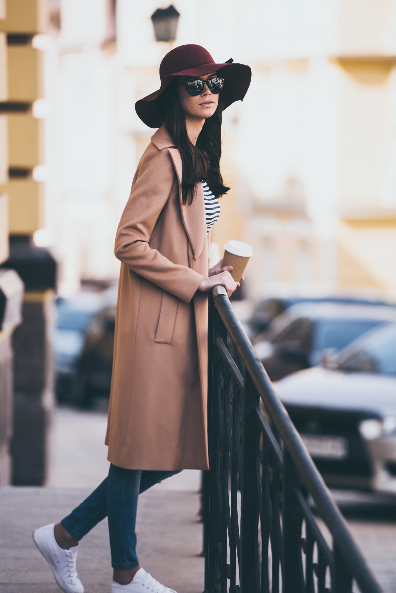 Le week-end approchant à grands pas, j'ai prévu d'aller à la campagne. Inspirez-vous des couleurs automnales et associez-les avec un classique intemporel : le jeans et les motifs marins. Un chapeau élégant apporte la touche finale à votre costume et garde vos cheveux à l'abri des gouttes.